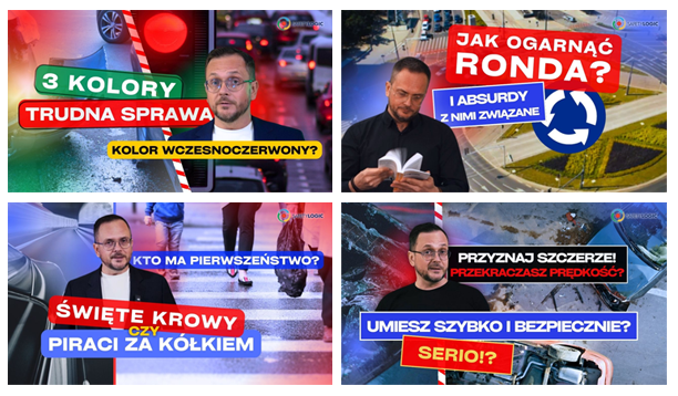 Nasze autorskie, krótkie i dynamiczne filmy szkoleniowe. Zawierają wiedzę z zakresu przepisów drogowych, bezpiecznej i ekologicznej jazdy.